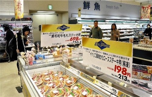 日本零售巨頭AEON旗下的超市從去年11月就開始逐漸調(diào)低包括食品和日用品在內(nèi)的商品價格,今年4月又有254件商品降價。消費(fèi)者購買頻次更高的牛奶、食用油和冷凍食品降價幅度相對也高,比如菜籽油價格下調(diào)了23.3%。