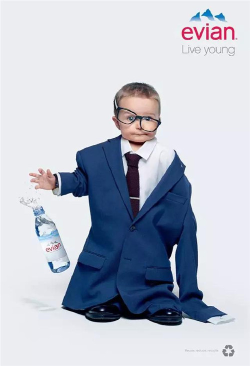 今年依云寶寶的核心創(chuàng)意在于 Oversize,即喝了依云水,就能像嬰兒一樣看待這個世界,在視覺呈現(xiàn)上,它們讓寶寶們穿上超大碼的成人時裝。如果說衣服代表了身份的話,這些穿著時裝造型的寶寶正是依云現(xiàn)在想要吸引的年輕顧客,而用 Evian 的全球營銷總監(jiān) Patricia Oliva 的話說,這些年輕人很可能并沒有看過當年的依云寶寶電視廣告。