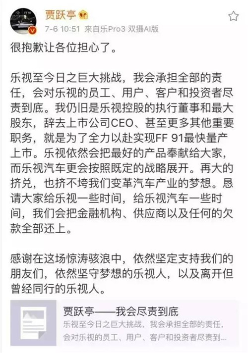 2、辭任之前賈躍亭剛發(fā)了道歉信,說會負責(zé)到底