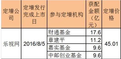 去年8月份初,樂視網(wǎng)發(fā)布定增公告,發(fā)行價45.01元,發(fā)行股份1.07億股,募資近48億元。以當(dāng)前最新收盤價30.68元計算,浮虧31.84%。