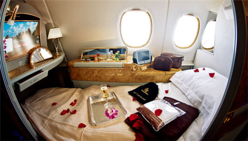 僅僅讓機艙變得高科技還不夠。一些航空公司的機艙也朝酒店化的方向設計,阿迪哈德航空就推出了第一個空中包房,12平方米的空間內(nèi)包括獨立的客廳、衛(wèi)生間和擁有雙人床的臥室,以及專屬的廚師和管家。