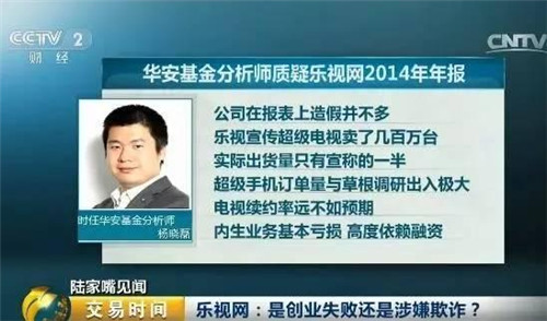 2015年6月,華安基金分析師楊曉磊公開質疑樂視2014你年報,他認為公司在報表上的造假并不多,但據測算,樂視宣傳超級電視賣了幾百萬臺,但實際出貨量只有宣稱的一半、超級手機訂單量也與草根調研數據出入極大,電視續(xù)約率遠不如預期,內生業(yè)務基本虧損,高度依賴融資。