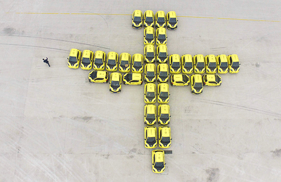 “小黃車”擺放成飛機形狀,屹立在航空園區(qū)內,甚為壯觀。吸引了多家媒體記者紛紛試駕試駕,記者們試駕之后,對其贊不絕口。