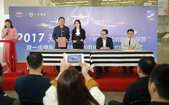 在當天活動現場,還舉行了一步用車鄭州航展官方用車平臺簽約交付儀式。一步用車向2017鄭州航展執(zhí)委會免費提供50輛“小黃車”作為通勤用車,航展執(zhí)委會日常辦公、駕駛員和機場工作人員日常通勤,安保及警察周邊巡邏均使用這些“小黃車”。