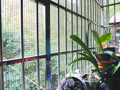 星星家的陽臺、窗戶全都圍著細(xì)細(xì)密密的鐵絲網(wǎng)。
