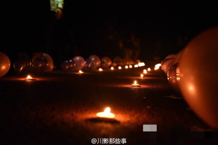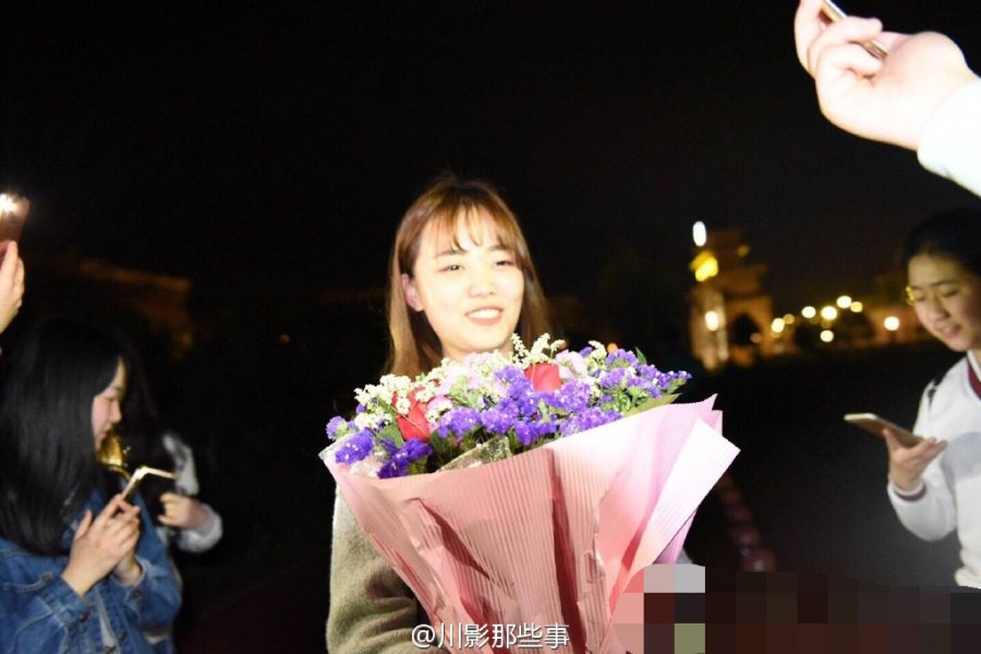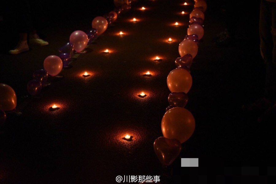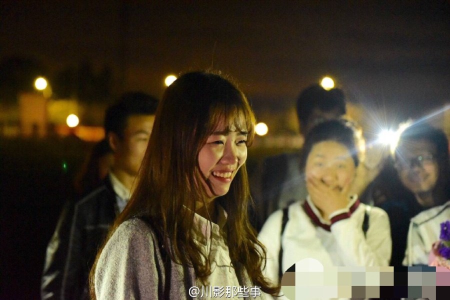 這不是求婚!4月6日晚,四川電影電視學(xué)院操場(chǎng)上川影2015級(jí)編導(dǎo)六班的同學(xué)們給美女輔導(dǎo)員過(guò)生日,全班男生單膝跪地唱《小幸運(yùn)》。