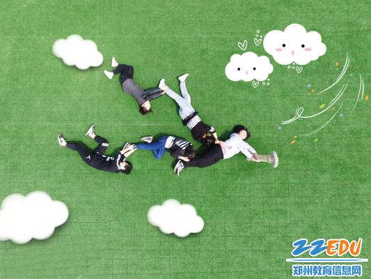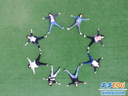 拍攝現(xiàn)場,只見在17屆航空班班長孫昱的指揮下,全體同學(xué)按照先前規(guī)劃好的分組,在地面組成各種樣式的圖案。拍攝現(xiàn)場學(xué)生們熱情洋溢,喜笑顏開。在歡樂的氣氛中,為在鄭州市經(jīng)濟(jì)貿(mào)易學(xué)校度過的無悔的青春,留下了濃墨重彩的一份記憶。
