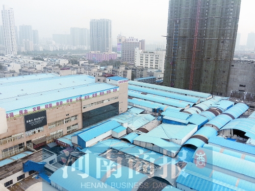 從現(xiàn)代童鞋城的窗戶向外看,盛祥置業(yè)的樓頂是一片藍色頂棚
