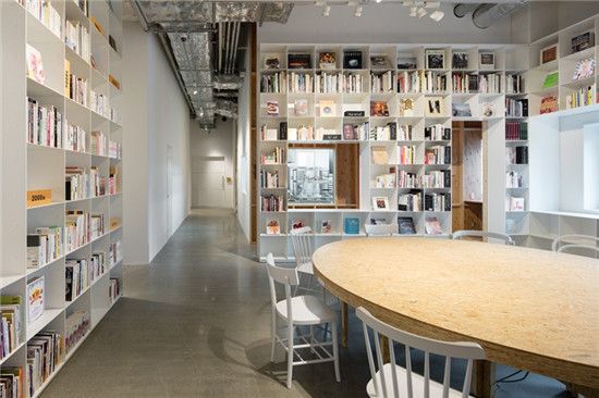 schemata第一次整修的時(shí)候包括有攝影工作室、廚房和餐廳。最近整修包括大型開(kāi)放式的空白庫(kù)??恐鴫Ρ诘陌咨墓褡永镅b滿了書(shū),透過(guò)這個(gè)小櫥窗可以看到廚房里面的情景。