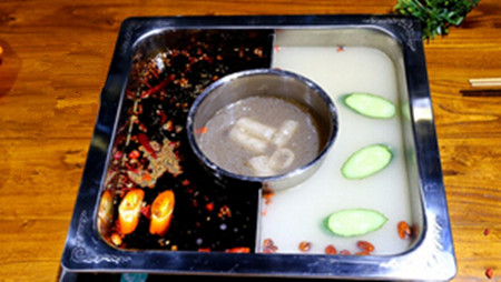 重慶橋頭火鍋起源于清朝宣統(tǒng)元年(1908年)。當(dāng)時重慶長江南岸海棠溪為川黔要津,水運(yùn)發(fā)達(dá),船工纖夫眾多。貧苦的他們體力勞動超強(qiáng),為了充饑,不得不把目光投向江邊眾多的屠牛場,求取人們棄之不用的畜禽胃腸、內(nèi)臟和血旺等,俗稱下水。他們就近在岸邊壘石造灶、劈柴燒鼎,將下水洗凈后連同辣椒、花椒、姜蒜等調(diào)料下鍋,煮而食之,邊吃邊燙,俗稱“連鍋鬧”。重慶火鍋的雛形,就這樣從大河文化、碼頭文化中衍生出來。