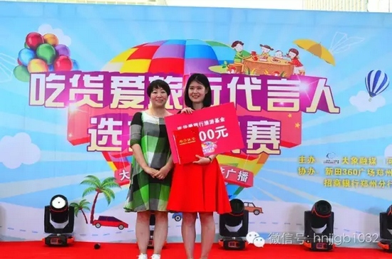 獲得第一名的選手成功簽約《吃貨愛旅行》成為代言人,由河南經濟廣播副總監(jiān)欣悅女士上臺進行了頒獎儀式。