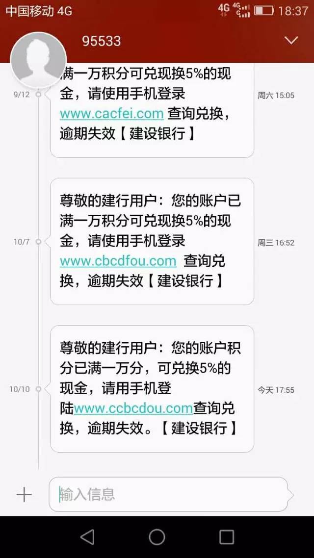 有建設(shè)銀行的標(biāo)志,積分兌換規(guī)則又寫(xiě)得很正規(guī),應(yīng)該不會(huì)有假吧?于是,一小部分市民進(jìn)一步走入了騙子的圈套,登錄了所謂的“手機(jī)銀行”……