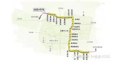 鄭州地鐵4號線起于南陽路(江山路)與新柳路(三全路)交叉口附近的惠濟人民醫(yī)院,止于加州工業(yè)園,途經(jīng)新柳路、沙門路、龍湖中二路、城市第一中心軸線道、中州大道、七里河路、佛崗東路、佛崗路,預計將于2020年6月竣工。