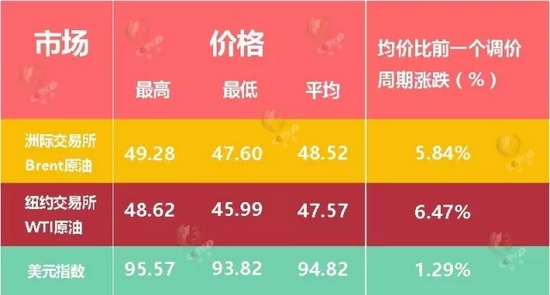 5月24日,因美國(guó)原油庫存減少,價(jià)格再度上漲,布倫特、WTI原油期貨收盤價(jià)格分別為48.61美元、48.62美元,其中WTI原油期貨價(jià)格再創(chuàng)去年10月以來的新高,比國(guó)內(nèi)成品油調(diào)價(jià)前分別上漲6.8%、9.2%。