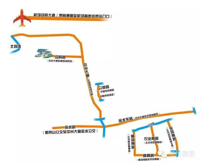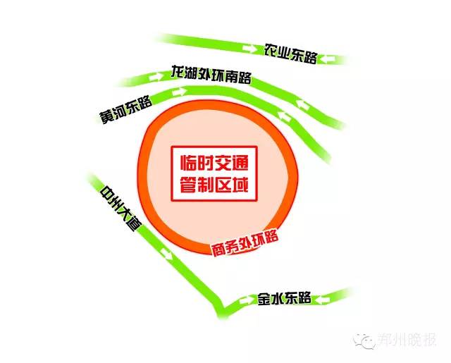 2、機(jī)場(chǎng)迎賓大道(貴賓通道至機(jī)場(chǎng)高速收費(fèi)站入口)、中州大道(北四環(huán)至鄭汴路)、迎賓路(中州大道至黃河迎賓館)、金水東路、(京港澳高速至中州大道)、金水路(中州大道金水立交至紫荊山立交立交)、黃河?xùn)|路(中州大道黃河立交至九如路)、眾意路(龍湖外環(huán)南路至商務(wù)內(nèi)環(huán)路)、黃河南路(正光路至商鼎路)、農(nóng)業(yè)南路(正光街至商鼎路)、東風(fēng)南路(正光街至榆林北街)、商鼎路(東風(fēng)南路至黃河南路)等道路和路段。經(jīng)過(guò)以上道路和路段的車(chē)輛和行人,遇到臨時(shí)交通管制時(shí),可以提前就近選擇其它道路繞行。