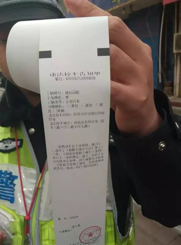 今天上午十點(diǎn),鄭州交巡警一大隊(duì)三中隊(duì)的謝民警就利用這種新型警務(wù)通對(duì)鄭州緯三路經(jīng)六路口違章停放的車輛進(jìn)行了非現(xiàn)場(chǎng)執(zhí)法,交警將駕駛員的身份信息和車輛信息輸入警務(wù)通后,核對(duì)無(wú)誤后,現(xiàn)場(chǎng)打印出違法停車告知單,而違法信息立刻就被上傳到了系統(tǒng)!