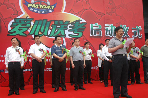 6月4號上午,隨著河南人民廣播電臺總編輯張大寶宣布啟動。河南交通廣播第四屆全省愛心送考大型公益活動正式拉開帷幕。河南省交通運(yùn)輸廳道路運(yùn)輸局、河南省公安廳交警總隊(duì)、河南人民廣播電臺以及鄭州市教育局、鄭州市交警支隊(duì)、鄭州市客運(yùn)管理處、鄭州市公交總公司等多家單位的領(lǐng)導(dǎo)出席了活動儀式。