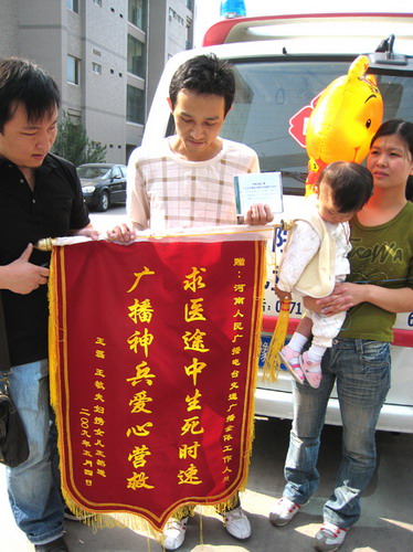 4月6日,在河南人民廣播電臺(tái)空中電波的幫助和協(xié)調(diào)下,衛(wèi)生、高速路政、交警等部門齊心協(xié)力,展開了一場(chǎng)挽救生命的接力大行動(dòng),信陽(yáng)一名生命垂危的手足口病患兒王然得到了及時(shí)救助。經(jīng)過近一個(gè)月的精心治療,5月5日上午,王然康復(fù)出院,坐上了回家的列車。