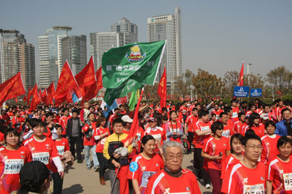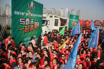 3月27上午,綠城鄭州陽(yáng)光明媚,春意盎然,2011年中國(guó)鄭開國(guó)際馬拉松賽分別在鄭州市鄭開大道和鄭東新區(qū)商務(wù)內(nèi)環(huán)鳴槍舉行,來自28個(gè)國(guó)家和地區(qū)的近3萬名選手參加了比賽。河南交通廣播也組織了由1041名車友組成的“千人跑友團(tuán)”參賽,大家一起跑進(jìn)春天,共同慶祝交通廣播成立18周年。