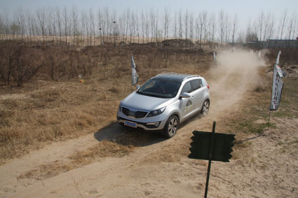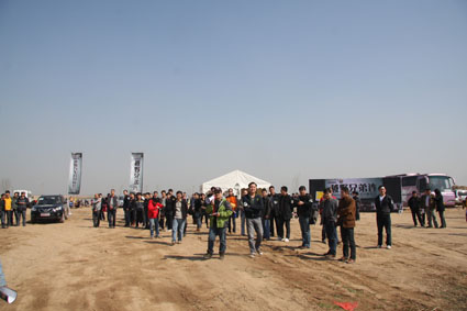 ?。ㄜ囉押嫌埃?br /> 報名參加這次越野活動的河南交通廣播的愛心車友達(dá)到100多名?;顒蝇F(xiàn)場,上百號人讓平時寂靜的黃河灘熱鬧起來,河邊的一塊空地上,一百多面旗子在迎風(fēng)飄揚(yáng)——“河南交通廣播”的LOGO下赫然印著“越野汽車公開體驗(yàn)營”九個大字,背景板不遠(yuǎn)處,就是體驗(yàn)駕馭越野車的賽場。駝峰、馬蹄坑、滾木路障、彈坑路、沙土路、連續(xù)轉(zhuǎn)彎……墨綠色背景的提示牌讓越野的氣息撲面而來。