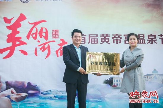 黃帝宮御溫泉被授予美麗河南“養(yǎng)生度假基地”稱號(hào),河南交通廣播總監(jiān)助理李芮女士和銀基國(guó)際旅游度假區(qū)總經(jīng)理譚忠山先生進(jìn)行了授牌儀式,光可鑒人的水晶皇后見(jiàn)證了這歷史的一刻。