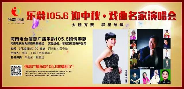 河南電臺信息廣播樂齡105.6傾情奉獻(xiàn)《樂齡1056迎中秋戲曲名家演唱會》將于9月23日晚19:00在河南省人民會堂激情開唱!