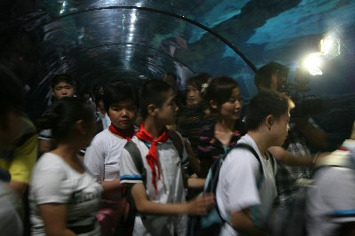 這批特殊孩子都是鄭州市二七區(qū)輔讀學(xué)校的在校學(xué)生,能夠在2012年六一兒童節(jié)來臨之際前往海洋館游玩,是大家多年以來的共同愿望。在三個多小時的時間里,信息廣播的編輯、記者、主持人領(lǐng)著智障、自閉癥兒童參觀了各個館舍。海豚館表演結(jié)束后,工作人員破例讓部分自閉癥孩子近距離與海豚接觸。由于海豚能發(fā)出多種波長的高頻超聲波(200至350千赫),對人的中樞神經(jīng)有激活作用,對自閉癥患兒有一定療效,孩子們臉上都露出燦爛的笑容,很多孩子都流下了激動的淚水。