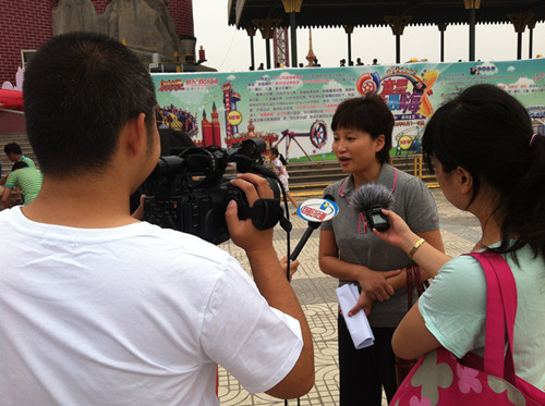 鄭州世紀(jì)歡樂園外聯(lián)部經(jīng)理劉倩倩說能陪孩子一起游園,完成心愿,她很欣慰。(出錄音)