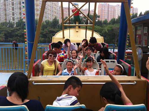 一進(jìn)入園區(qū),孩子們就歡呼著向旋轉(zhuǎn)木馬跑去,我們的記者和孩子們一起坐在旋轉(zhuǎn)的馬背上,和孩子們一起沉浸在節(jié)日的歡樂中。