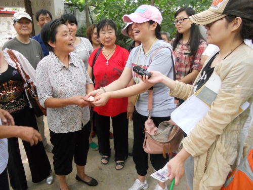 “周迪,呀,來了這么多人?走、走、到家了,回咱家去。”今天(2012年6月7號)上午10點多,河南人民廣播電臺信息廣播的部分職工和《周迪有戲》欄目組的戲迷剛到村邊,就遇到了早早等候在村口的商大娘,她熱情的話語透著一個莊戶人的熱情與樸實。