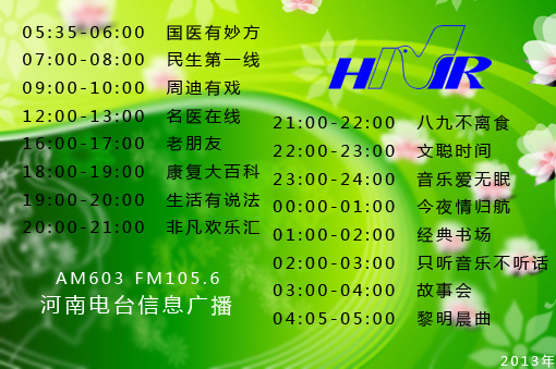 新舊交替,歲月輪回。為回報(bào)廣大聽眾一直以來的支持與厚愛,從2013年元月1日起,全新改版的AM603、FM105.6河南電臺(tái)信息廣播將精彩綻放。