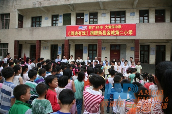 信廣20年,大愛傳中原。5月30日,河南電臺(tái)信息廣播《周迪有戲》欄目組攜愛心基金走進(jìn)信陽新縣金城小學(xué)和廟墩村小學(xué),為孩子們捐助了4間教室和生活學(xué)習(xí)用品。