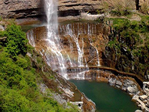 紅石河碧水橫溢、紅綠相映、色彩斑斕、明麗如畫,因海拔1100米被譽為“太行天河”。從紅石河畔俯瞰,山谷幽深、流水潺潺,河水順著光潔平整、錯落有致的紅石板流淌不息,直沖而下形成又一著名景點——天河大瀑布。紅石河的右畔是觀音洞,觀音洞里的泉水常年不斷、甘甜可口,用來泡茶增三分香,煮飯增加三分甜,現在敞開供應,保你一杯解風塵,二杯去疲乏,三杯大汗落。 八里溝的山,八里溝的水,甚至八里溝的每一塊石頭都引起世界的好奇。景區(qū)森林覆蓋率達90%,如今,八里溝景區(qū)已經成為國內很多前衛(wèi)、時尚的游客非常向往的一個人間天堂、世外桃源,也是春季旅游的經典線路。