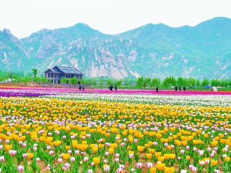 春天是賞花的季節(jié)。在嵖岈山天磨湖景區(qū)一側,有著近600畝100多萬株的荷蘭郁金香種植基地,顏色多達36種的郁金香花,有的含苞待放,有的花開正艷,成片的黃、紅、粉、郁金香花色彩嬌艷炫麗,一瀉千里,氣勢逼人,令人心曠神怡。