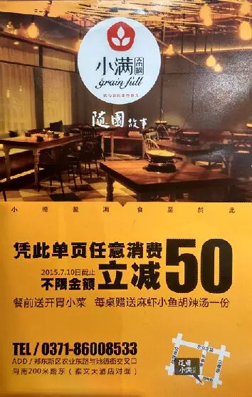 還未正式營業(yè),憑此微信進店消費不限金額,立減50元,還有小菜相送,截止日期7月10日!