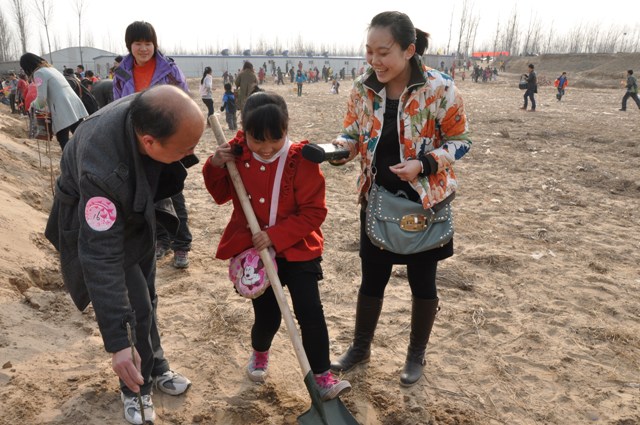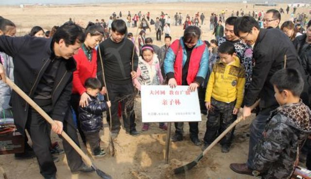 植樹節(jié)前夕,教育廣播帶領(lǐng)20組聽眾家庭,來到黃河岸邊種植樹苗。一到達(dá)種植地點,面對大片的沙漠化土地,教育廣播總監(jiān)張建功談起了這次活動的初衷,“舉目望去,周圍全是沙灘,可以想到很多沙漠化的土地。我們教育廣播有責(zé)任讓孩子知道,愛護(hù)我們的家園從小做起,從我做起,從種植每一顆樹苗做起?!?0組聽眾家庭將一顆顆充滿希望的果樹苗和自己的心愿卡一同種下。家庭代表說,“這個活動非常有意義,能夠讓小孩子跟小樹一起成長,把這心愿埋到樹下面。在他成長過程中有一個這么好的回憶,我們覺得非常高興。”