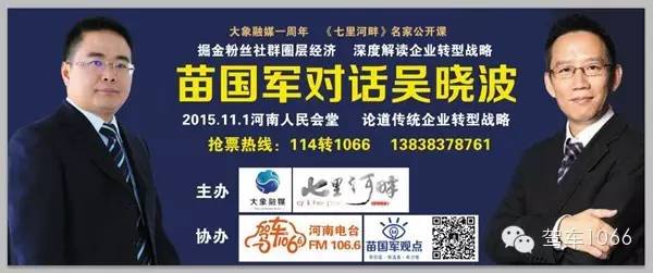 對(duì)話(huà)吳曉波,作為關(guān)注社會(huì),運(yùn)籌帷幄的社會(huì)精英怎會(huì)不心動(dòng)?你想提問(wèn)嗎?在微信平臺(tái)“駕車(chē)1066”留下您的問(wèn)題,苗國(guó)軍將把您的精彩問(wèn)題帶到現(xiàn)場(chǎng)。