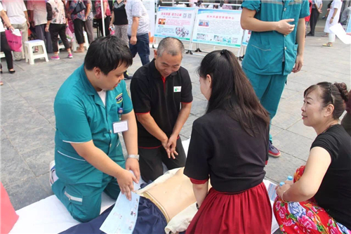 醫(yī)生們一邊操作,一邊講解,市民們有不明白的,還可以現(xiàn)場(chǎng)提問(wèn)。幾乎每一位認(rèn)真學(xué)習(xí)的市民都想一試身手,醫(yī)生則在一旁一對(duì)一指導(dǎo)。