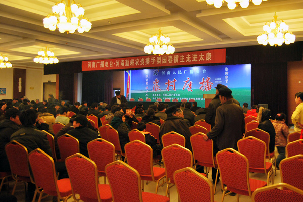 為凈化農(nóng)資市場(chǎng)、保護(hù)農(nóng)民利益、服務(wù)農(nóng)業(yè)生產(chǎn),河南電臺(tái)農(nóng)村廣播成功舉辦——“3.15放心農(nóng)資下鄉(xiāng)進(jìn)村活動(dòng)”。3月14日清晨冒雨趕赴河南省周口市太康縣,邀請(qǐng)省會(huì)相關(guān)職能部門領(lǐng)導(dǎo)現(xiàn)場(chǎng)宣傳科學(xué)種田知識(shí),現(xiàn)場(chǎng)抽獎(jiǎng)為當(dāng)?shù)剞r(nóng)民發(fā)放放心農(nóng)資。并邀請(qǐng)河南勤耕農(nóng)資等企業(yè)、文化界相關(guān)人士帶去精彩的互動(dòng)與節(jié)目演出。戲曲、魔術(shù)、雜技、變臉、抽獎(jiǎng)等穿插互動(dòng)!精彩紛呈!高潮迭起!當(dāng)天從周口各地聞?dòng)嵜坝贲s來(lái)的農(nóng)民把活動(dòng)現(xiàn)場(chǎng)擠得水泄不通,鄉(xiāng)親們臉上洋溢著滿意的笑容,雖然天氣驟冷,但現(xiàn)場(chǎng)互動(dòng)把氣氛一次次推向了高潮!在歡聲笑語(yǔ)中,大家不僅對(duì)今年3.15的主題“消費(fèi)與服務(wù)”有了更深層次的理解,而且對(duì)農(nóng)村廣播的“心連心”惠農(nóng)活動(dòng)更加喜愛并充滿期待!