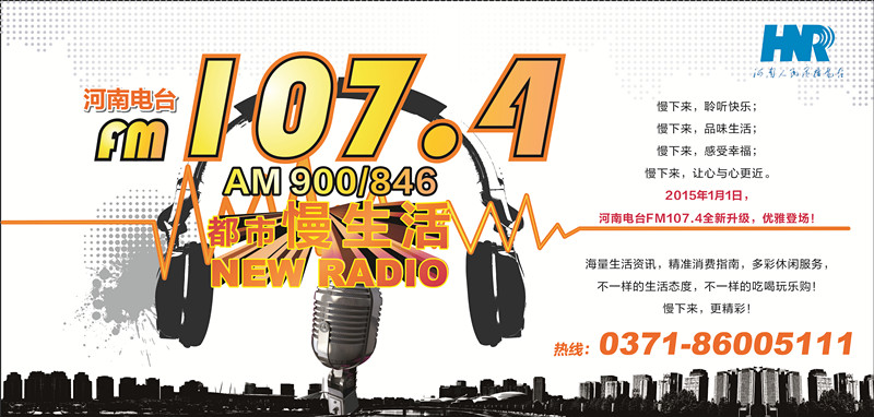 2015年1月1日,河南電臺FM107.4慢生活NewRadio全新升級,優(yōu)雅登場!海量生活資訊,精準(zhǔn)消費指南,多彩休閑服務(wù),不一樣的生活態(tài)度,不一樣的吃喝玩樂購!慢下來,我的“心”常態(tài)!河南電臺1074慢生活NewRadio(FM107.4 AM900/846)。