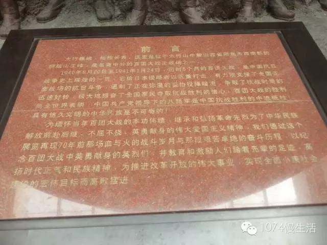 紀念抗日戰(zhàn)爭暨世界反法西斯戰(zhàn)爭勝利70周年追隨先輩足跡,唱響時代凱歌——紀念抗日戰(zhàn)爭暨世界反法西斯戰(zhàn)爭勝利70周年晉冀魯豫記者大型聯(lián)合采訪活動《回聲》拉開大幕前方報道晉冀魯豫四省聯(lián)和采訪團的第二站來到了山西陽泉縣獅腦山百團大戰(zhàn)紀念館,百團大戰(zhàn)是中國抗日戰(zhàn)爭時期,中國共產(chǎn)黨領(lǐng)導下的八路軍、新四軍與日軍在中國華北地區(qū)晉察冀邊區(qū)發(fā)生的一次規(guī)模最大、持續(xù)時間最長的戰(zhàn)役。