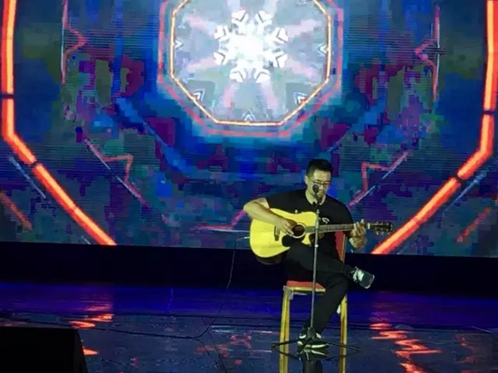 楊明毅登場,自彈自唱。