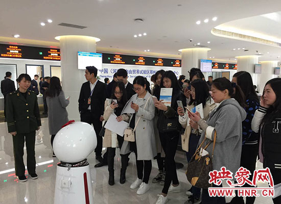 映象網(wǎng)快訊(記者 駱瓊 阮海峰 王邵怡 文/圖)4月1日上午,中國(河南)自由貿(mào)易試驗區(qū)掛牌儀式在鄭州片區(qū)綜合服務(wù)中心舉行。這里入駐了17個政府部門,可辦理211項業(yè)務(wù),為區(qū)域內(nèi)的企業(yè)和居民辦事提供了極大的便利。