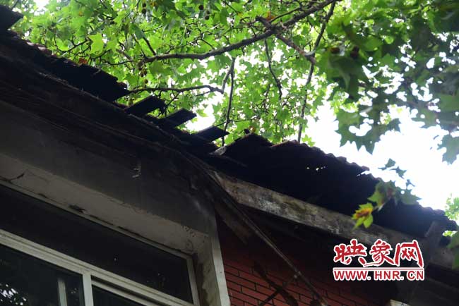 在三樓,河南省第一建筑工程集團(tuán)有限責(zé)任公司物業(yè)管理分公司兩位工作人員稱,房頂不安全,他們早在兩個月前向上級部門打了報(bào)告。