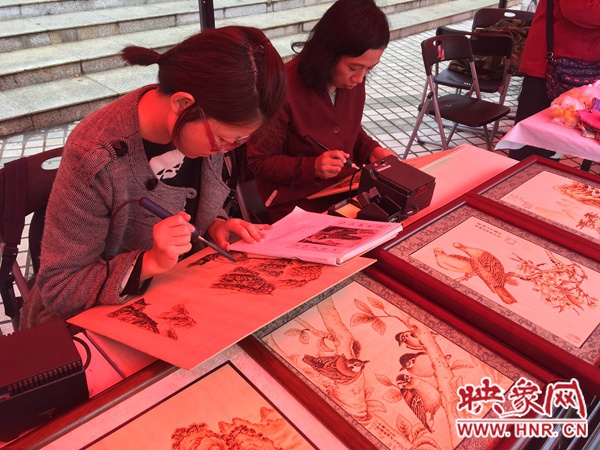 非物質(zhì)文化遺產(chǎn)傳人現(xiàn)場(chǎng)烙畫(huà),每副畫(huà)需要兩天方可完成