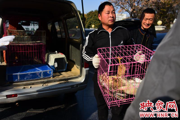 13日下午14時(shí)許,鄭州市人民公園西門(mén)口,鄭州市林業(yè)局野生動(dòng)物救護(hù)站的工作人員將幾只鐵籠子分別裝上面包車(chē)?;\子里裝著的是救護(hù)站近段時(shí)間救護(hù)的已經(jīng)具備放生條件的鳥(niǎo)類(lèi)和獸類(lèi),這些動(dòng)物將在自然條件比較優(yōu)越的新鄭市具茨山放生。