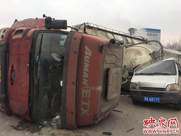 據(jù)了解,槽罐車(chē)司機(jī)姓李,身上有三處輕微骨折,正在醫(yī)院接受治療。