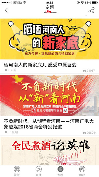 映象網(wǎng)訊(記者 秦雯)看兩會(huì)最熱最新鮮,看百姓關(guān)注,看代表委員風(fēng)采,看各界如何解讀報(bào)告。1月22日起,河南進(jìn)入2018兩會(huì)時(shí)間。大象融媒帶著問(wèn)題聚焦兩會(huì),帶著答案回應(yīng)網(wǎng)民。其間,大象融媒旗下所屬各媒體大顯身手,貢獻(xiàn)出大量精彩的報(bào)道,直播、高清圖、系列策劃及H5產(chǎn)品等,這些內(nèi)容一經(jīng)推送,就吸引百姓高度關(guān)注,有些板塊更是形成“兩會(huì)熱門話題”和“網(wǎng)絡(luò)熱詞”,被網(wǎng)友分享,引代表委員熱議。