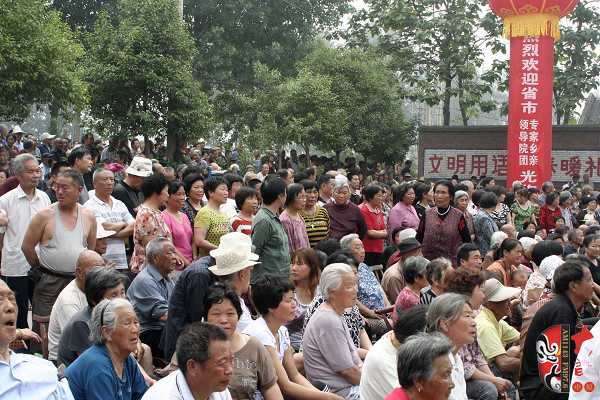 來自省會的戲劇專家級各地市院團(tuán)代表步入曲劇宗師·一代名伶朱六來先生紀(jì)念碑揭碑儀式會場