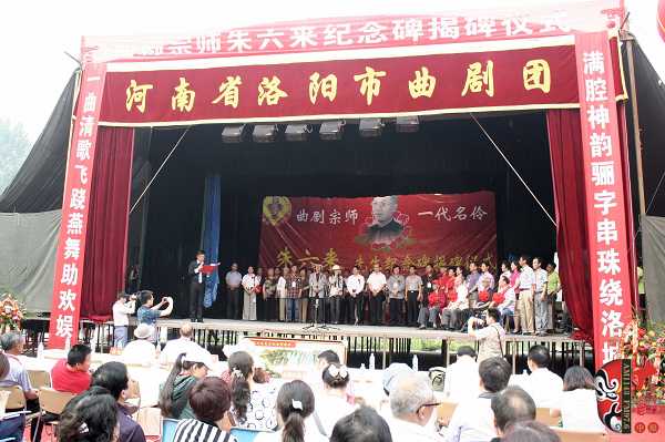 5月9日,由河南省藝術(shù)研究院、省戲劇家協(xié)會、省戲曲表演學(xué)會、洛陽市文廣新局、洛陽市戲劇家協(xié)會、洛陽市曲劇院主辦的,曲劇宗師?一代名伶朱六來先生紀(jì)念碑揭碑儀式在其故里洛陽市關(guān)林鎮(zhèn)大東村舉行。來自省內(nèi)的著名戲劇評論家、劇作家馬紫晨,河南省藝術(shù)研究院院長方可杰,戲劇評論家譚靜波,曲劇老藝術(shù)家劉衛(wèi)生、馬騏、牛長欣、高桂枝、郭鳳娥等,以及各地市兄弟院團(tuán)代表參加了本次揭碑儀式。同時,著名曲劇表演藝術(shù)家“曲劇泰斗”馬騏,有南牛北馬之稱的南牛著名曲劇表演藝術(shù)家牛長欣,以及各兄弟院團(tuán)的著名演員獻(xiàn)上了精彩的專場演出。